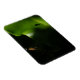 Uma pequena aranha numa teia com uma sombra a cair na folha de uma samambaia.