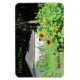 Este grande ímã mostra a antiga garagem enquadrada pelos girassóis que alguém cresceu nos jardins comunitários na Fazenda de Parmelee em Killingworth, Connecticut.
