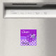 O ímã da máquina de lavar na moda, em padrão de bolinhas roxo e branco, e um roxo sólido, com o texto branco lendo Limpar, em uma metade do ímã e o texto preto lendo sujo, na outra metade. Gráficos bonito de uma fita roxa, no meio, são decorados com uma flor roxa e uma pequena joaninha roxa. Faz um presente de anfitriã excelente.