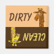 Este ímã engraçado da cozinha é colocado na sua máquina de lavar louça. Vire o lado limpo para cima quando a carga terminar. Vire o lado sujo para cima quando a máquina estiver sendo enchida. O ímã branco tem uma girafa de desenho animado fofo. O sujo é marrom. O limpo tem manchas que são de cor normal, e está sorrindo. Você pode alterar o estilo ou a cor da fonte, se desejar. Encontre mais ímanes da máquina de lavar louça no Lápis da Alina.