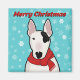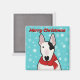 Magneta de Natal adorável e festiva, com um lindo Touro Inglês chamado Rex, tudo empacotado para o inverno.