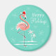 Na moda design com um toque retrorreflector com um flamingo rosa festivo vestindo um chapéu vermelho de Papai Noel, estrelas e palmeiras decoradas com bolhas colocadas sobre um fundo aqua. Magnet com um design personalizável para você personalizar com seu próprio texto, imagens e ideias. Uma imagem de arte digital original criada por Quirky Chic.
