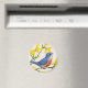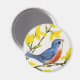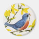 Esta ilustração vintage é um doce pássaro azul e vermelho sentado num galho com flores amarelas e cantando. Veja minha loja Art by MAR para combinar produtos com este design.