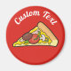 Ilustração de desenho animado de pizza fatia. Cor de fundo personalizada. Texto personalizado.