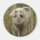 Este ímã apresenta uma bela fotografia de um porco rosa pinto-pinto giro emergindo de uma erva alta.