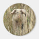 Este ímã apresenta uma bela fotografia de um porco rosa pinto-pinto giro emergindo de uma erva alta.