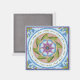 Traga um jardim tranquilo para sua geladeira com esta mandala desenhada à mão em cores pastéis. A versão quadrada apresenta violetas de canto.