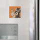 Viva sua geladeira com este ímã laranja divertido com a arte safena de Nellie Murphy. Ela criou esta imagem engraçada de um coelho banjo tocando e gato para o cobrir da revista "Black Cat" em 1895. A pintura, com fundo laranja vibrante, é um maravilhoso exemplo da arte antropomórfica popular no final do século XIX e início do século XX.