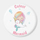 Magneta de sereia mais fechada. Pequena sereia e ímã de geladeira Narcal. Este ímã brilhante e colorido apresenta uma pequena sereia e um pequeno narval bonitinho em suas mãos. Todos os textos são personalizáveis. Você pode mudar facilmente a forma e o tamanho do ímã no menu personalizado.