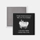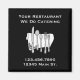 Um modelo de ímã personalizado para a sua indústria de restaurantes ou comidas com letras brancas em bloco e espaço para duas linhas de texto acima e abaixo, e um design elegante com um conjunto de pratos de prata em um guardanapo branco bonito embelezado em cinza e preto sobre fundo preto. Personalize-o para adicionar seu nome ou mensagem, alterar as cores de fundo e até salvar seu design para mais tarde.
