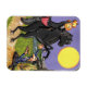 Este ímã tem a minha ilustração chamada Sleepy Hollow Exchange, onde Ichabod Crane encontra o Cavaleiro Sem Cabeça e o Daredevil, seu steed, bem antes de atravessar a ponte coberta para segurança, Ichabod Crane oferece ao Cavaleiro Sem Cabeça uma torta de abóbora em troca da abóbora em sua mão.