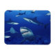 Magnet mostrado com uma impressão de foto de tubarões no mar profundo. Personalize este item ou comprar como está. Imagem do stock