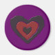 Este ímã apresenta uma bela imagem digital de um coração gótico, preto e vermelho, com bordas quebradas que brilham com uma luz etérea e parecem estar derretendo. O fundo é roxo.