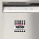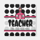 Um ímã para professores com um fundo de bolinhas negras. Texto personalizável. Logotipo da escola cor-de-rosa no centro.