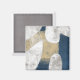 Uma grande forma de abstrato em cobrir azuis marinho a borda da canvas com recortes revelando um fundo branco texturizado. Uma área bege texturizada vestida fica sobre a forma azul enquanto as linhas brancas se torcem como corda em um acabamento dinâmico até a peça.