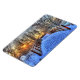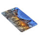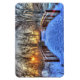 Fotografia de uma ponte com neve durante um pôr do sol, impressa em um ímã flexível.
