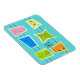 Este Retro Atomic Kitsch Flexible Magnet apresenta tantas formas de cozinha e tantos padrões de cozinha. O padrão inspirado nos Primaveras de Palma apresenta um fundo de turquesa e um molde maravilhosamente desenhado na linha de 1960. É quase fofo demais para descrever! Uma forma vintage, cor-de-rosa, apresenta um reboque retrorreflector e um carro. Um bloco amarelo apresenta uma caixa de juke. Uma forma azul apresenta uma mulher sofisticada carregando martini. Uma forma de idade do espaço verde contém um relógio estelar e um aparelho de televisão clássico. Um bloco de limão tem um gato e um jogador de discos moderno de meio século. E uma forma laranja apresenta um carro fino clássico e um cartaz na estrada. O que não é amar?