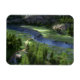 Um caminho de enrolamento leva sobre as montanhas até um vale do rio solitário. Ele atravessa o riacho rochoso sobre uma linha de pedras pisadas e termina em uma solitário enfiada debaixo das árvores ao pé das colinas. O campo da montanha está cheio de grama verde e manchas de flores azuis e rosa. Os picos de sombreamento ainda estão cobertos de neve nesta manhã de primavera.