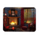 Um canto de leitura confortável num dia chuvoso de outono. Ao redor da lareira com um fogo em branco estão as poltronas vermelhas, com pilhas de livros e chás e um bule para completar o conforto. Fora de um salgueiro amarelo e um maple vermelho e uma seita de faia são obscurecidos pela chuva que sopra a janela onde um gato gengibre se senta olhando para fora.