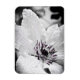 Um ímã flexível com uma imagem de uma Flor Clematis branca impressa nele.
