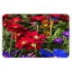 Um motim de flores coloridas de primavera em vermelho vivo, azul, roxo, rosa e laranja. O foco está em uma flor de fogo no primeiro plano, com um arco-íris de flores ao seu redor. Este jardim florístico multicolorido 3D foi criado em Vue.
