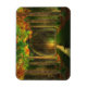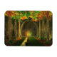 Uma sala de excelentes cortou ao lado da colina, e ao longo de cada parede um corredor de árvores. No extremo extremo, uma baía rasa, com um telhado arquejado, e um pequeno riacho reentrando pela parede como uma fina cortina na frente dela. Na baía, uma mesa e dois vasos, que brilham com um ouro e uma luz verde. A mistura das duas luzes é como o sol de verão brilhando através de árvores jovens. As árvores também brilham, cada folha revestida de luz, verde e ouro e vermelha.