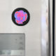Este ímã bonito apresenta uma bela fotografia de uma tulipa. A fotografia foi colorida artificialmente, resultando numa tulipa fluorescente. As pétalas exteriores são coloridas com tons azuis e vermelhos, enquanto as pétalas interiores apresentam tons de rosa e roxo. O centro da flor é amarelo claro. O simples fundo preto mostra a beleza impressionante desta flor.