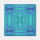 Este ímã tem um padrão geométrico em tons de azul escuro e aqua.