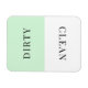 Mínimo de máquina de lavar louça verde pastel limpa ou imã suja para indicar pratos na cozinha da casa.