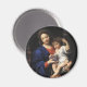 A Madonna veste túnica azul e vermelha e tem a criança Cristo no colo. As uvas da Virgem na mão dela. Uma linda Madonna e um ímã infantil.