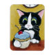 Magneta retangular com tema de gato bonito com uma pintura de Lisa Marie Robinson. Trabalho de arte apresenta um gato de smoking bonito decidindo se come seu cupcake. O cupcake tem gelo azul e uma cereja no topo. Copyright © Lisa Marie Robinson Todos os direitos reservados. É ilegal usar ou duplicar isso, ou qualquer uma de nossas imagens, sem permissão por escrito.