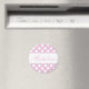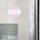 Pontos brancos nítidos num fundo cor-de-rosa precioso e uma faixa branca que pode ser personalizada para a sua pequena querida.