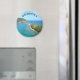 Arranhe a geladeira com este ímã redondo DOMINICA.