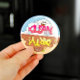 Um sorridente Sr. Suds agarra-se à palavra brilhante "limpo" como um franzido Sr. Muck segura a palavra "sujo". Este ímã reversível, inspirado no retrato dos anos 70, ajuda a indicar se os pratos da máquina de lavar louça estão limpos ou sujos. Ligações às portas da máquina de lavar louça magnética. Ilustração original de Noël Snow.