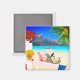 Cena do paraíso tropical completa com água turquesa, praia de areia branca e palmeiras.