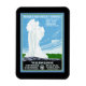 Turismo de safra e ilustração de propaganda de viagem para o Parque Nacional de Yellowstone. Eu adicionei bordas coloridas e cuidadosamente desenhadas de design gráfico.