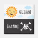 Íman de máquina de lavar louça limpa e suja, com um belo sol a rir, com o texto "Limpo" e um crânio de desenho animado com o texto "Sujo".