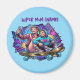 Add a splash of vibrant energy to your home with this stylish decorative magnet. Featuring a high-contrast illustration in a modern Synthwave aesthetic, it captures a joyful moment of a mother and son on a skateboard. It’s a perfect piece of functional art for your fridge, locker, or any magnetic surface.
