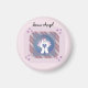 Um pequeno anjo de neve fofo com asas cor-de-rosa segurando um coração roxo. As estrelas suaves e as listras acentuam esta design de inverno. Lembre-se de anjos fazeres na neve talvez você deva lembrar alguém com este ímã rosa de anjo da neve.