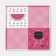 Como homenagem às saborosas guloseimas do verão, este clássico padrão de toalha de piquenique é adornada com uma fatia de melancia cercada por formigas e sementes nos quadrados brancos e uma grelha de chaleira moldada por bifes, cogumelos e peças de carvão na outra.