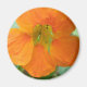 Este belo ímã apresenta uma fotografia detalhada de uma flor bonito de nasturtium laranja rodeada de folhagem. A fotografia foi tirada por meio de macrofotografia e mostra a cor vibrante dessa flor popular.