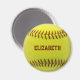 Bola amarela personalizada de softball com texto marrom que você pode personalizar com seu próprio nome. Presente perfeito para o jogador de softball