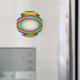 Este ímã apresenta um padrão multicolorido de cores psíquicas brilhantes ao redor de uma estrutura central em forma de ovo. Parece uma fantasia de uma espaçonave alienígena pronta para sequestrar uma terra.