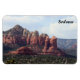 Íman flexível de 4" x 6" retangular com uma imagem de Rocha Pote de Café em Sedona, Arizona. Em pé no extremo oeste do Sedona Coffee Pote Rock, está perfeitamente posicionado para derramar a primeira xícara de refresco matinal para os incontáveis vizinhos que vivem à sombra deste monumento único e colorido. Visível em toda a cidade, o Pote de café Rock imita um pote no estilo percolador, completo com spout. A base da Rocha do Pote de Café é é o vermelho profundo de Sedona, com leves estrias de branco e rosa. A tampa do Pote de café é bege e laranja listrados, parecendo-se ainda mais com o topo claro do percolador. Veja toda a coleção de Magnet Arizonas na seção HOME.