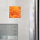 Uma fotografia de um rosa cor de laranja floresce. As pétalas de flores variam de amarelo a vermelho-alaranjado brilhante, como se estivessem em chamas.