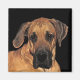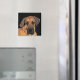 Os grandes dinamarqueses são cães domésticos também conhecidos como o Gentle Giant ou o alemão Mastiff. O maravilhoso animal de estimação neste ímã é um bebê gentil com pele amarela, dourada e castanha, nariz preto, orelhas disquetes e olhos doces e cheios de alma. Ele é uma das raças de cães mais altas do mundo.