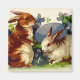 Óptica ilustração de dois coelhos coelhos num campo de trevo com ovo de Páscoa tingido. Cartão correspondente: