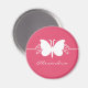 Rodovalho doce e simples borboletas Magnet personalizável com uma silhueta bonito de borboleta e uma delicada borda de espiral elegante. Esta imã de geladeira adorável é uma forma excelente de guardar notas importantes, especialmente quando personalizada com o seu nome ou outro texto personalizado! Basta adicionar seu próprio texto nos espaços fornecidos ou clicar no botão "Personalizar" para alterar fontes, cores de texto ou adicionar/remover texto.