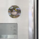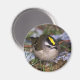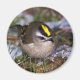 Reino coroado de ouro alimentando-se na grama coberta de neve.
