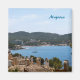 Vista do céu azul, oceano e telhados na cidade, Majorca, Espanha. Efeito de pintura